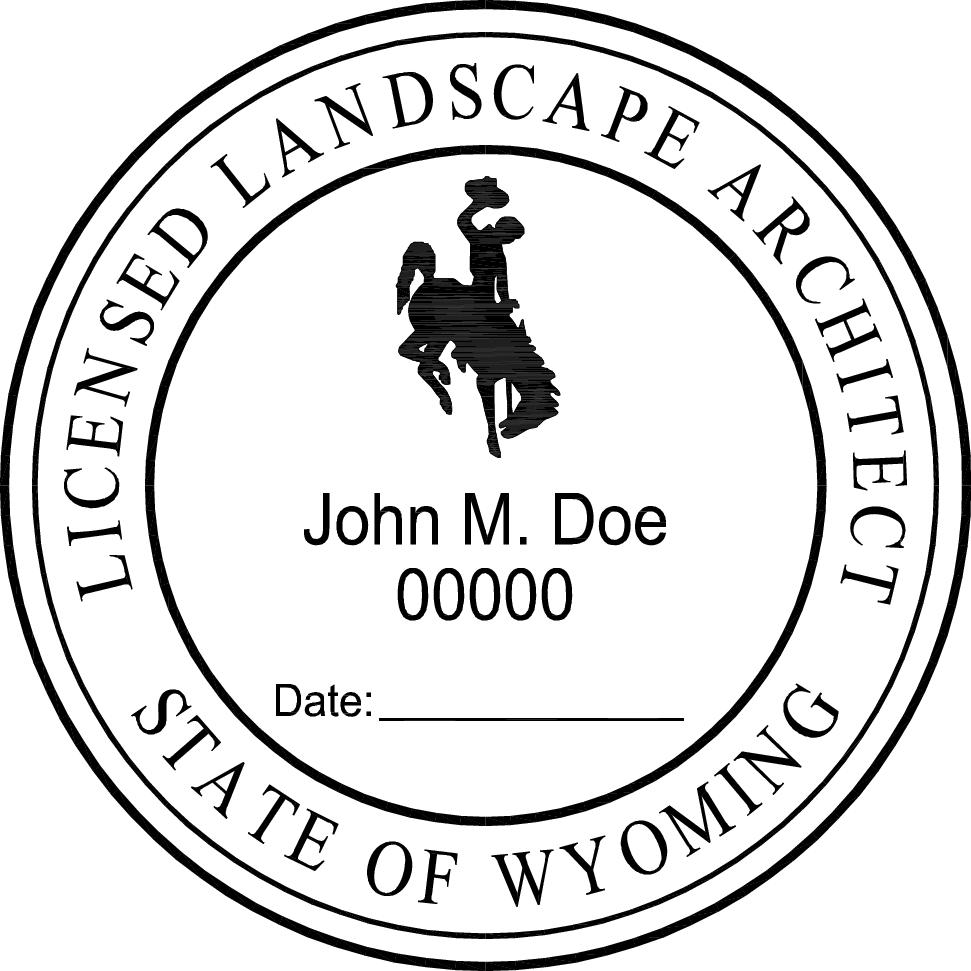Our Landscape Architect stamps comply with all state board regulations. We offer electronic stamps, rubber stamps, self-inking stamps, pre-inked stamps, and embossers for our Landscape Architect stamps. Our Wyoming Landscape Architect stamp is offered in 1 5/8 inches in diameter.